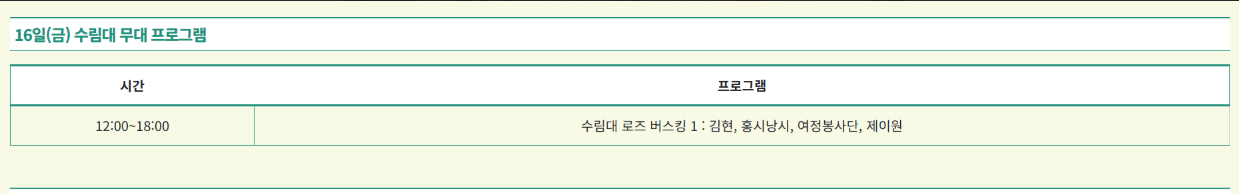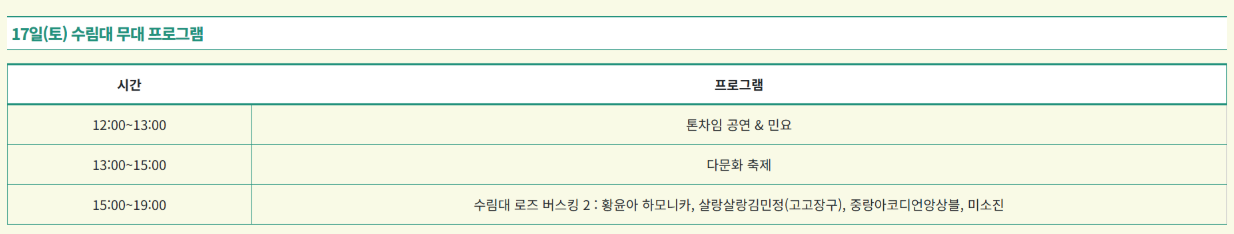 - 우천 시 일부 공연 취소 가능 (현장공지 및 SNS 참고)