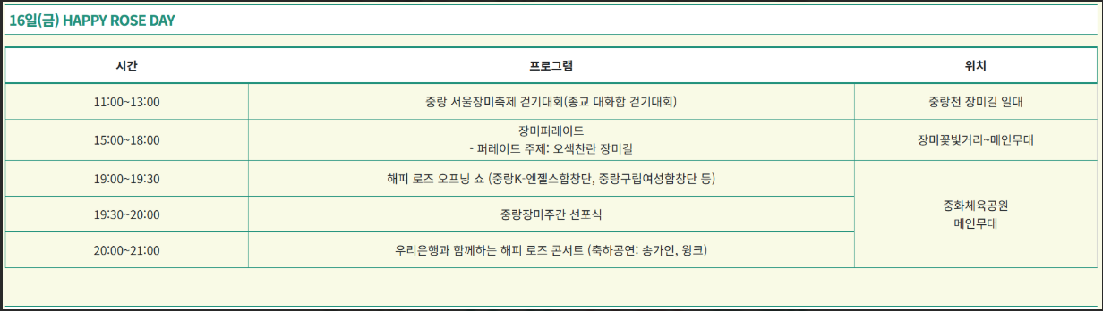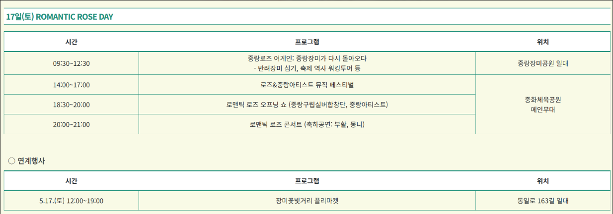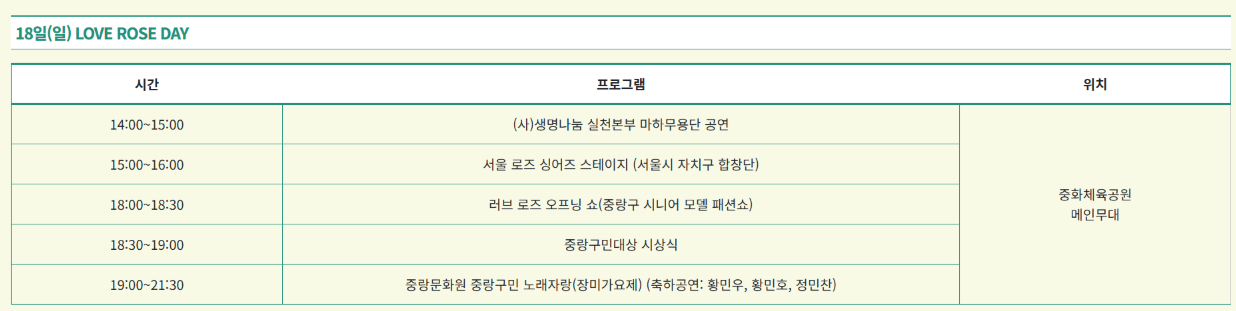 - 홈페이지: 중랑구청 서울장미축제 안내